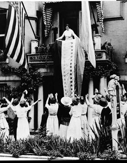 The Office of Cultural Affairs commission Jersey City based designer & actress Megan Wagner to help replicate the pageantry of the Women's Suffrage movement in 1919. She researched all the pieces she created for us, and you can see the reference images side by side with the work she produced for us. She made sashes, hats, buttons, flags and pennants (as well as hand-made tassels!) Be sure to watch our video where she takes you behind the scenes to talk about her process from research to execution.